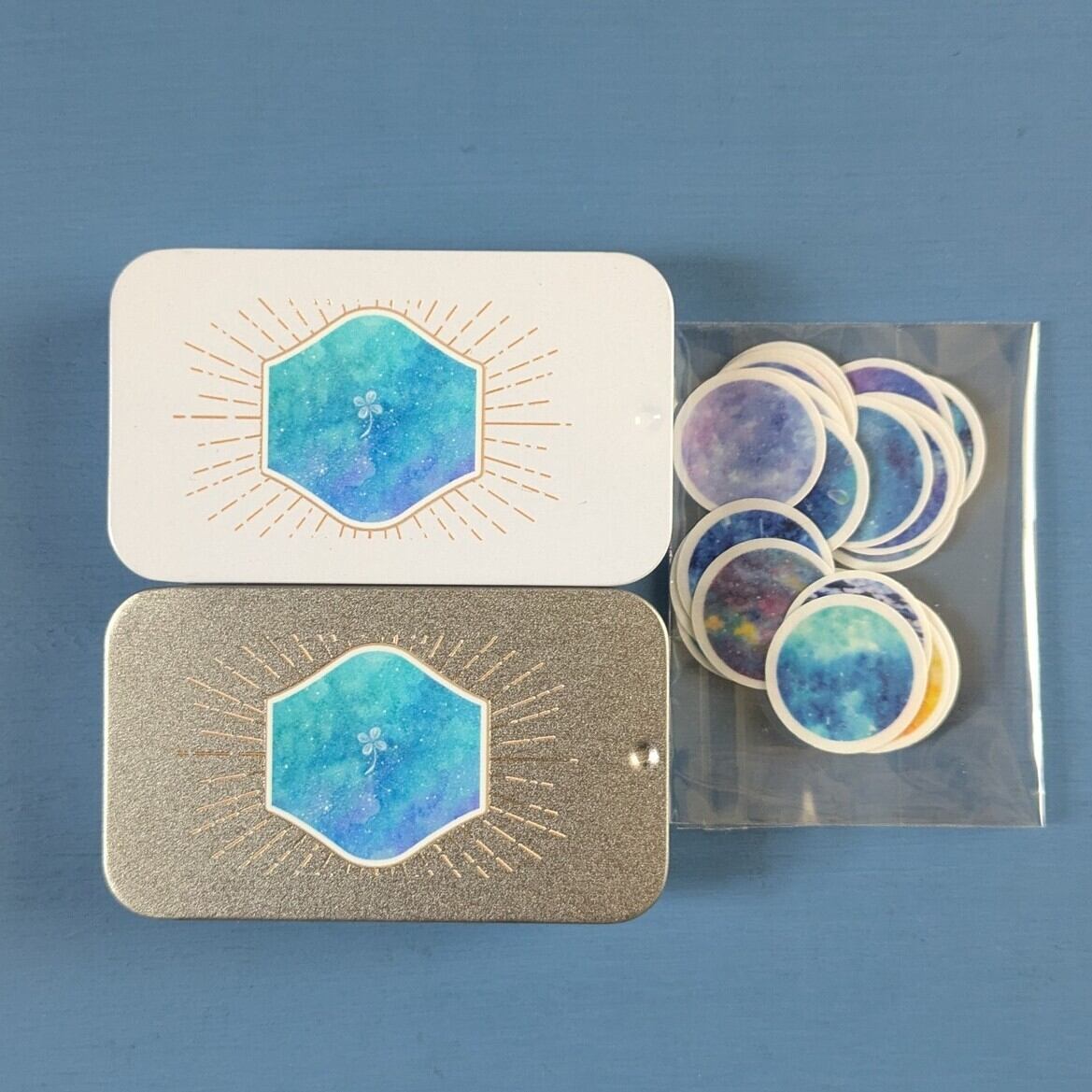 星空を印刷したメンタム缶と