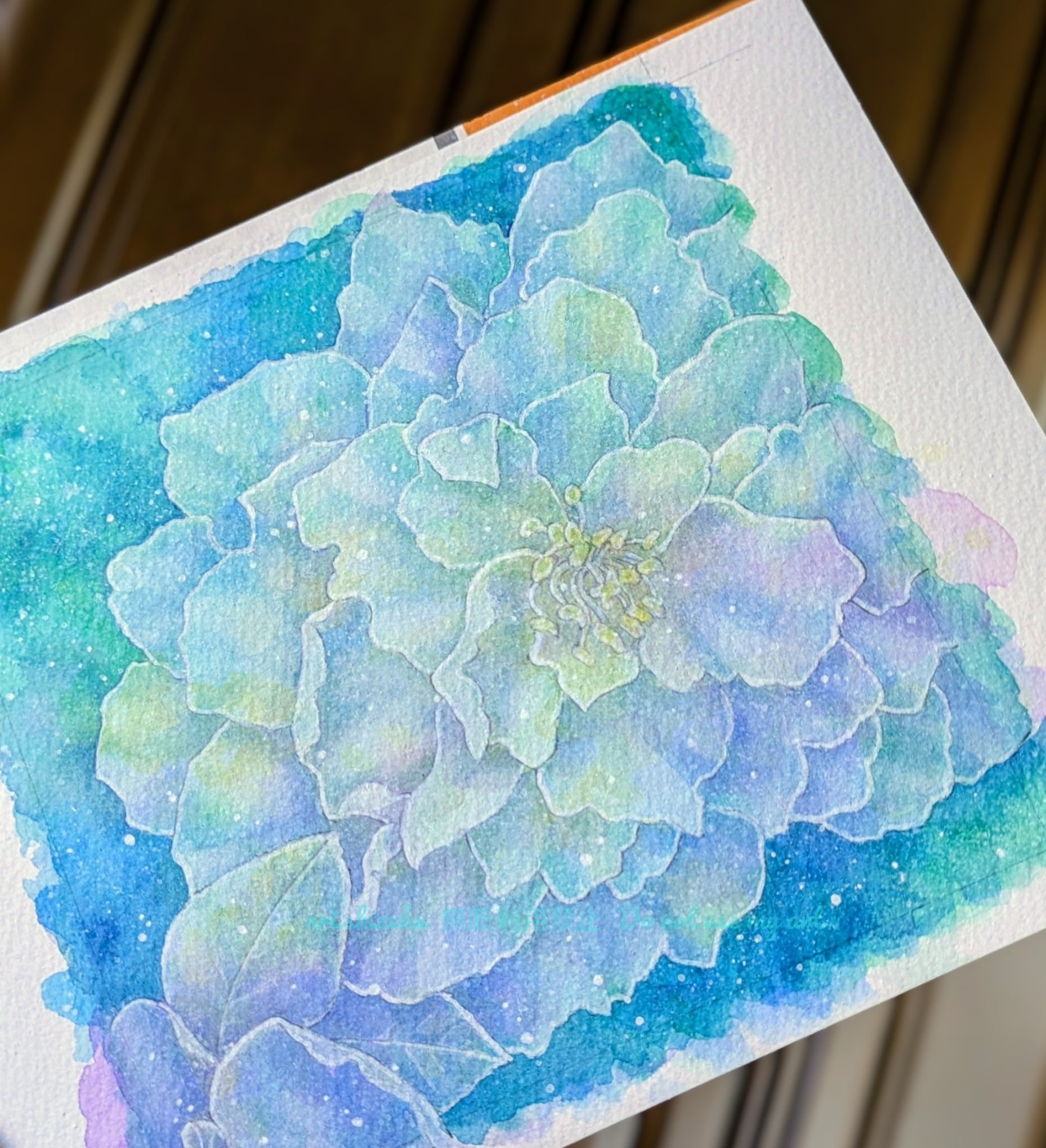 白色の山茶花を見ながら描きました。